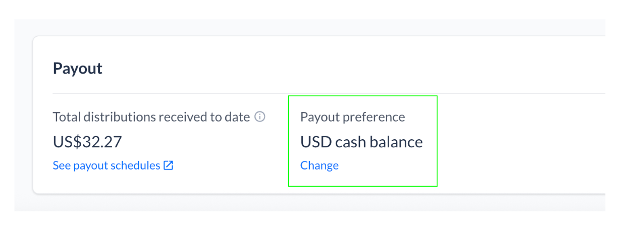 To change the payout preference of your distributions, you may select your goal with distribution share class funds and select "Change" under "Payout Preference".