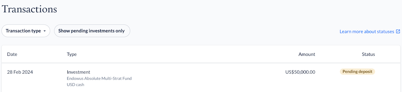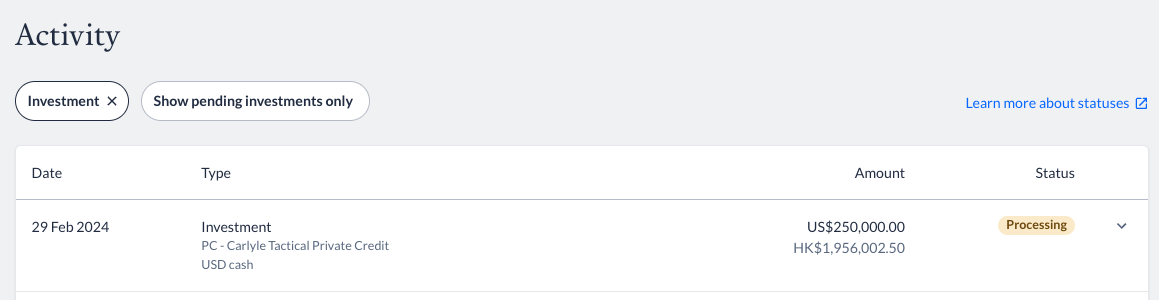 On the Endowus platform, alternative investments go through different fund statuses.