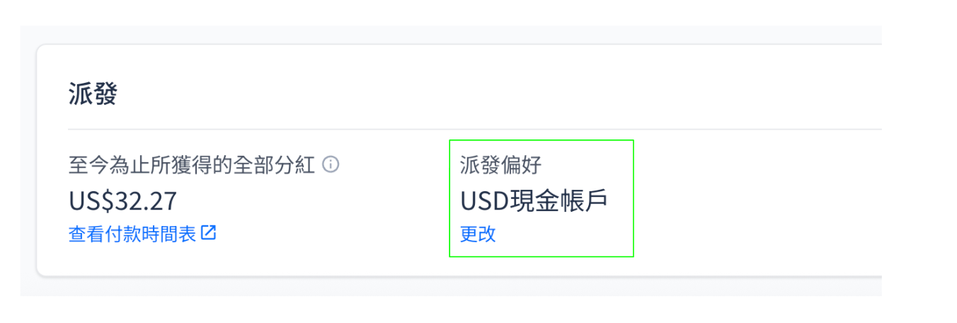 - 在「派息偏好(Payout Preference)」下點選「更改」。