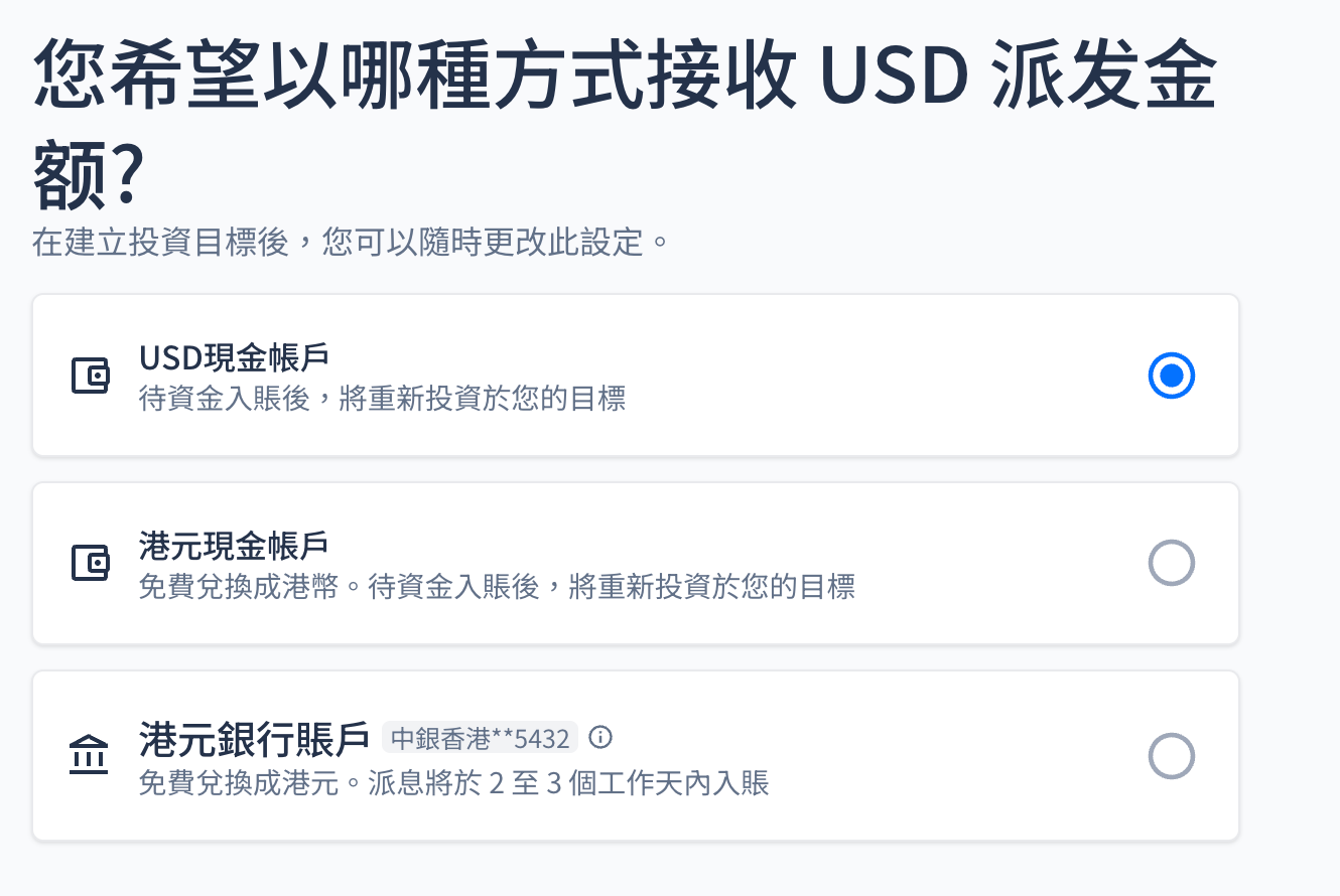 若您在全數贖回投資組合後仍有應得收益,或該派息基金已不在組合的目標資產配置中(儘管組合仍持有其他投資),我們將根據您最後設定的派息偏好發放該筆收益。