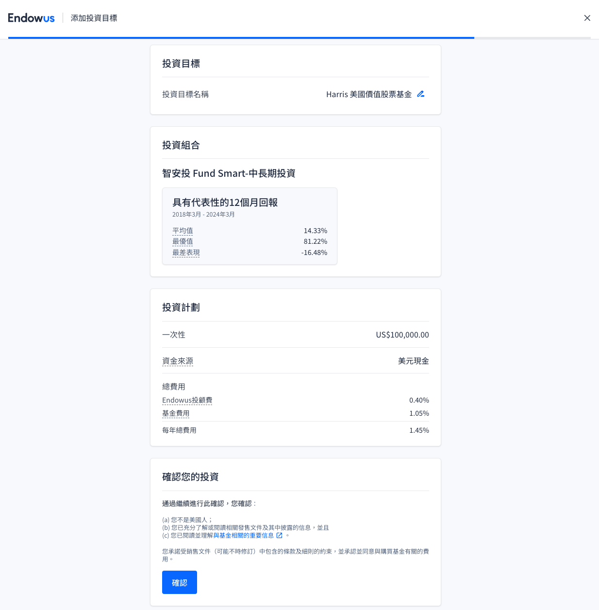 - 在輸入你的投資額及確認你的投資