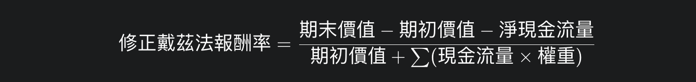 其計算方法是:將價值增長或損失(扣除外部資金流後)除以測量期間的平均資本 。